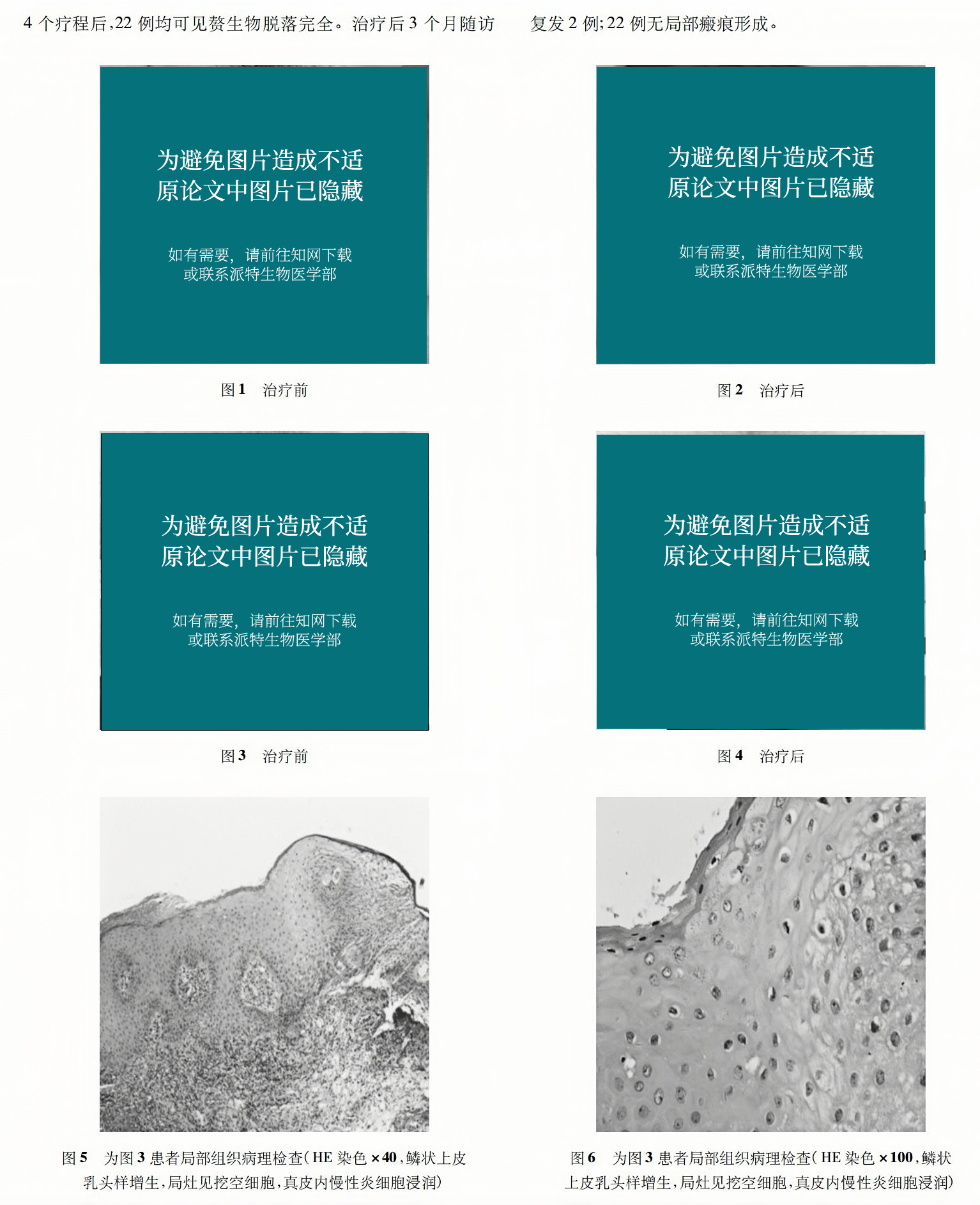 肉眼及醋酸白實(shí)驗(yàn)觀察患者疣體消除,且在治療后3個(gè)月內(nèi),原疣體部位未復(fù)發(fā)。