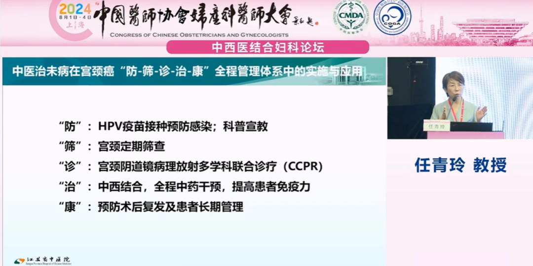 江蘇省中醫(yī)院任青玲教授就《中西醫(yī)結(jié)合宮頸癌防治一體化平臺建設(shè)》為題進(jìn)行報告: