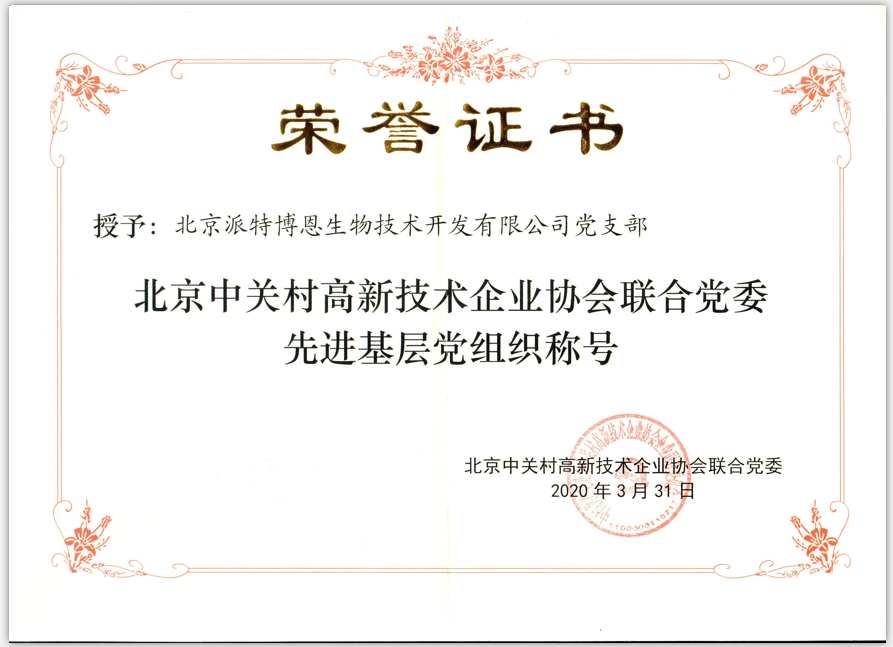 派特公司黨支部自2019年4月15日成立以來,在上級黨組織的領(lǐng)導(dǎo)下,在派特公司總部領(lǐng)導(dǎo)的大力支持下,積極有序地開展了各項(xiàng)黨員活動。 派特公司黨支部榮獲“北京中關(guān)村高新技術(shù)企業(yè)協(xié)會聯(lián)合黨委先進(jìn)基層黨組織稱號”。
